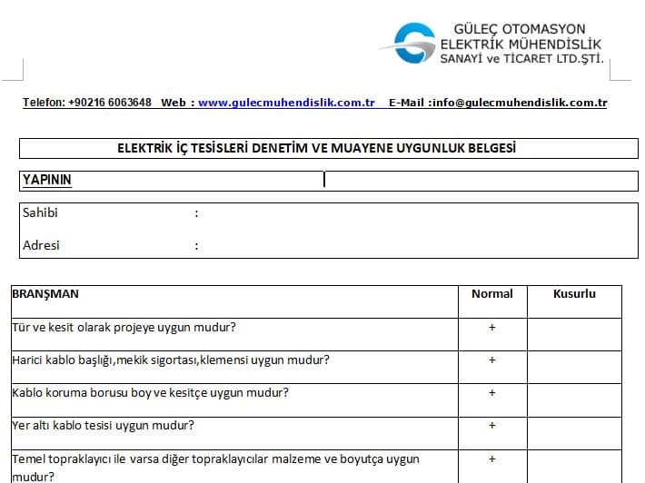 elektrik ic tesisat uygunluk raporu